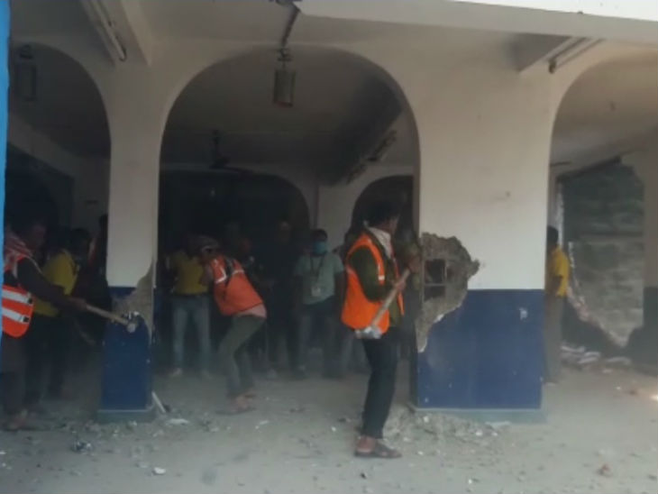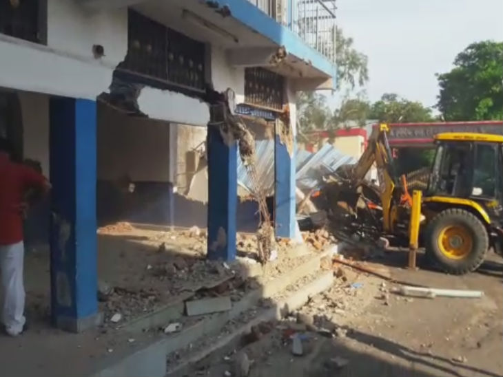 - नगर निगम और पुलिस ने दोपहर बाद गिन्नौरी इलाके में उसकी अवैध बिल्डिंग को गिरा दिया।