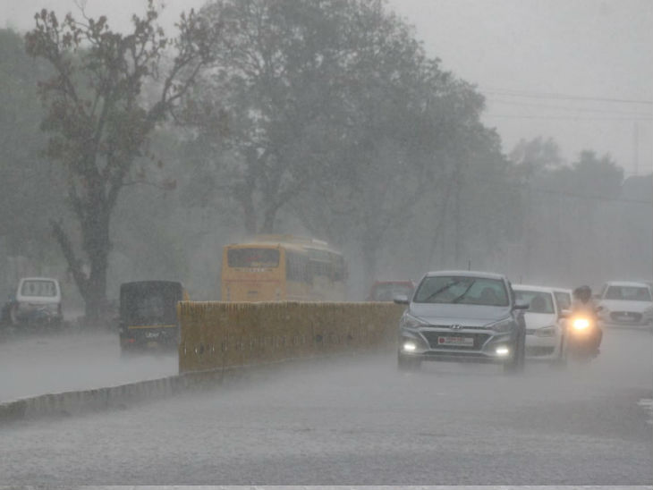 भोपाल के लिंक रोड नंबर-1 पर तेज बारिश के कारण अंधेरा जैसा छा गया। इसके कारण वाहन चालकों को गाड़ी चलाने में परेशानी हुई। फोटा- शान बहादुर