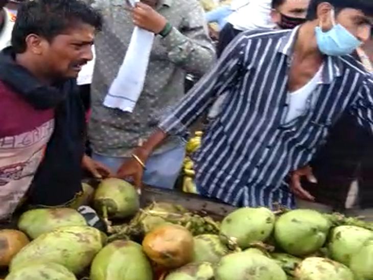 राम बाग क्षेत्र में ठेला जब्ती की कार्रवाई के दौरान नारियल वाला फूट-फूट कर रोने लगा।