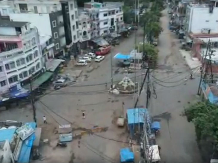 भोपाल पुलिस लोगों पर नजर रखने के लिए 8 ड्रोन कैमरों की मदद ले रही है। ड्रोन से यह फोटो वीआईपी रोड चौराहे का लिया गया है।