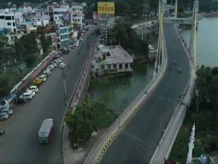 भोपाल के राजाभोज सेतु का ड्रोन से लिया गया फोटो।