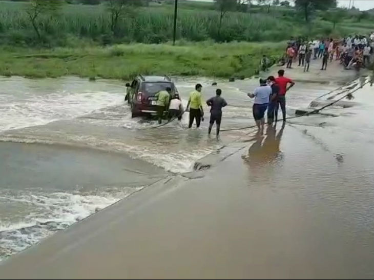 - रपटे पर पानी होने के बाद भी कार निकाली, बीच रास्ते में ही गाड़ी बंद हो गई