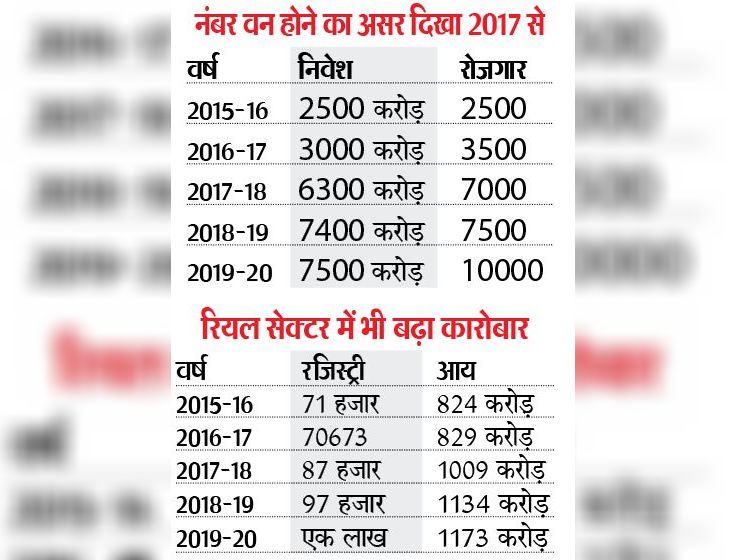साल जिले में औसतन 70 हजार संपत्तियों के सौदे हो रहे थे। 2017-18, 2018-19 और 2019-20 के दौरान हर साल 90 हजार संपत्तियों के सौदे हुए और रियल सेक्टर कारोबार 10 से 11 हजार करोड़ के बीच पहुंच गया। इससे सरकार का राजस्व 800 करोड़ से बढ़कर 1100 करोड़ के पार हो गया है।