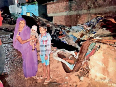 शनिवार को शहर में तेज बारिश हुई। शाम को लोहांगी मोहल्ला में सोनू अहिरवार का कच्चा घर गिर गया। उस वक्त मकान में सोनू की पत्नी शारदा, बेटा अमित और 7 महीने की आशिका मौजूद थी। मकान का छप्पर गिरने के बाद मां शारदा घबरा गई और वे अपने बच्चों को लेकर बाहर निकली। इस बीच मकान का काफी हिस्सा धराशायी हो गया।