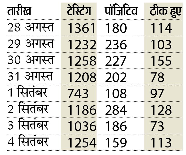 Recorded 1582 people in the city in 8 days positive; Rage 63 was found in July and 119 patients in August, to 184 by the start of September. | 8 दिन में शहर में रिकॅाॅर्ड 1582 लोग मिले पाॅजिटिव; जुलाई में राेज 63 और अगस्त में 119 मरीज मिले थे, सितंबर शुरू होते ही 184 हो गए