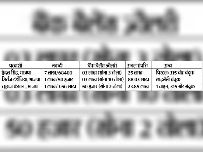 2018 : प्रत्याशियों की नकदी, बैंक बैलेंस, संपत्ति का ब्यौरा