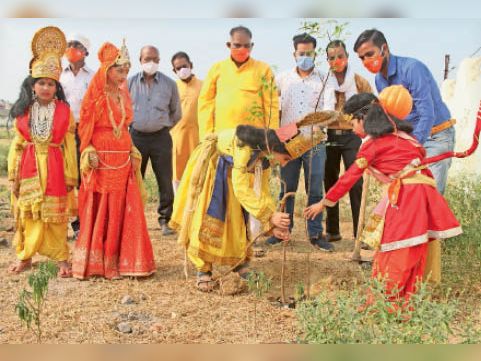 - बच्चों को रामायण के पात्र बनाकर पौधे रोपे