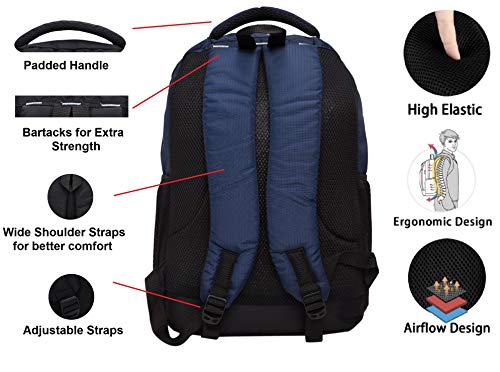 Multiple Compartments and organizerWider base to hold more kinds of stuffPadded laptop compartment, can hold up to a 15.6-inch laptopMain compartment to carry a charger, clothes, books, headset and CDs etcDurable side pockets with elastic mesh fabric to hold the water bottle, sipper and protein shake etc. Suitable for college, office, gym and travelling
