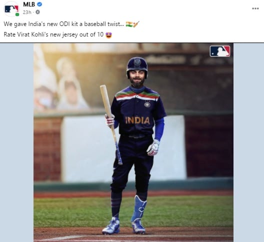 इस तस्वीर को शेयर करने के साथ ही एमएलबी ने फैन्स से पूछा है- कोहली की इस नई जर्सी को 10 में से नंबर दीजिए. विराट कोहली को बेसबॉल में देखकर फैन्स ने भी इस पोस्ट पर जमकर कमेंट्स किए हैं. फैन्स विराट कोहली के इस नए लुक को काफी पसंद कर रहे हैं.