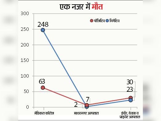 पॉजिटिव मरीजों से दोगुना से ज्यादा निगेटिव मरीजों की उज्जैन में मौत हुई है। मार्च से अब तक 9 माह 16 दिनों में 100 पॉजिटिव की मौत हो चुकी है। जबकि अन्य करीब 273 मरीजों की मौत हुई है। इसमें सिर्फ आरडी गार्डी मेडिकल कॉलेज अस्पताल में ही 248 निगेटिव मरीजों की मौत हुई है तथा 22 से ज्यादा ऐसे मरीजों की मौत हुई जो कि सस्पेक्टेड थे।