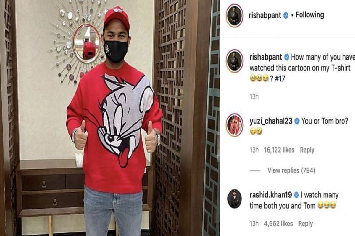युजवेंद्र चहल ने जो तस्वीर सोशल मीडिया पर पोस्ट की, उसमें उन्होंने लाल रंग का पुलओवर (गर्म टीशर्ट) पहना था. इसमें कार्टून किरदार टॉम की तस्वीर बनी हुई थी. ऋषभ पंत ने इस तस्वीर पर कैप्शन लिखा, ‘आप सभी में से किसने इस कार्टून को देखा है.’ इसपर युजवेंद्र चहल ने बड़ा मजेदार कमेंट कर पंत को ट्रोल कर दिया. युजवेंद्र चहल ने लिखा, ‘तुम्हें और टॉम को?’ राशिद खान ने भी ऐसा ही कमेंट किया. उन्होंने लिखा, ‘मैंने तुम्हें और टॉम को कई बार देखा है.’ युजवेंद्र चहल और राशिद खान ने ऋषभ पंत को इशारों ही इशारों में जैरी बताया, जो कि एक चूहा है.