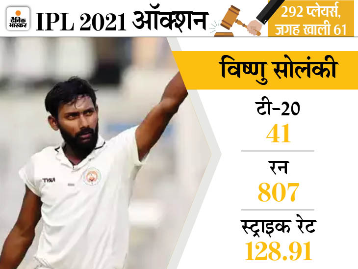IPL के 14वें सीजन के लिए मिनी ऑक्शन कल चेन्नई में होगा। इस बार ऑक्शन में भारत के घरेलू टूर्नामेंट्स से निकले कई शानदार खिलाड़ी शामिल हो रहे हैं। इन खिलाड़ियों ने डोमेस्टिक लेवल पर खुद को साबित भी किया है। 20 लाख बेस प्राइस वाले बड़ौदा के विष्णु सोलंकी, केदार देवधर, अवि बरोत जैसे बल्लेबाजों पर करोड़ों की बोली लग सकती है।