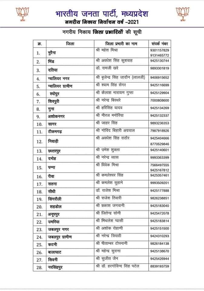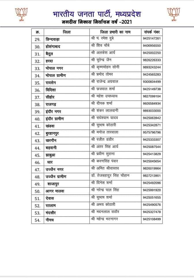 - BJP Announces Corporation Election District Election In charge, Responsibility Of Indore City MP Shankar Lalwani And Rural Radheshyam Yadav