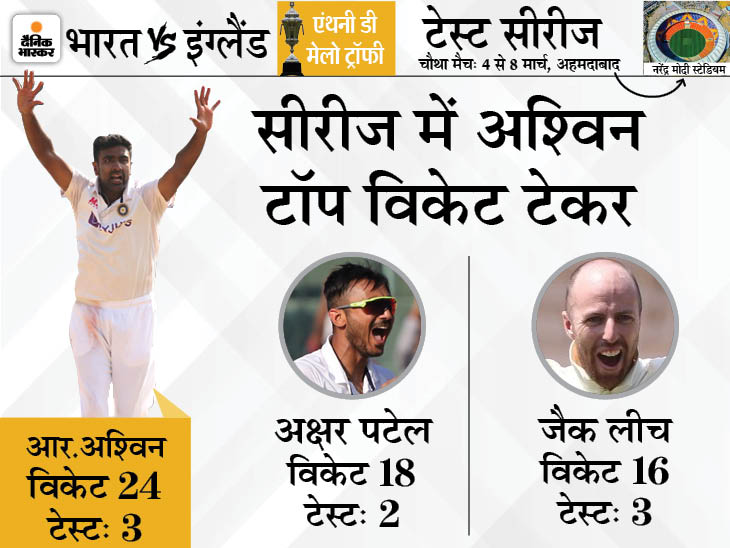 गुजरात क्रिकेट संघ के एक अधिकारी ने बताया, ‘नरेंद्र मोदी स्टेडियम में 11 पिच (5 लाल और 6 काली मिट्टी) हैं। डे-नाइट टेस्ट पिच नंबर-5 पर खेला गया था, जो लाल मिट्टी से बनी थी। यहां पहले दिन से ही पिच पर धूल उड़ने लगी थी और मैच 6 सेशन भी नहीं चला था। हालांकि आखिरी टेस्ट पिच नंबर-4 पर खेला जाएगा। इसे मार्क कर दिया गया है। यह पिच लाल मिट्टी से बनी है, जहां स्पिनर्स के साथ बल्लेबाजों को भी काफी मदद मिलेगी।’