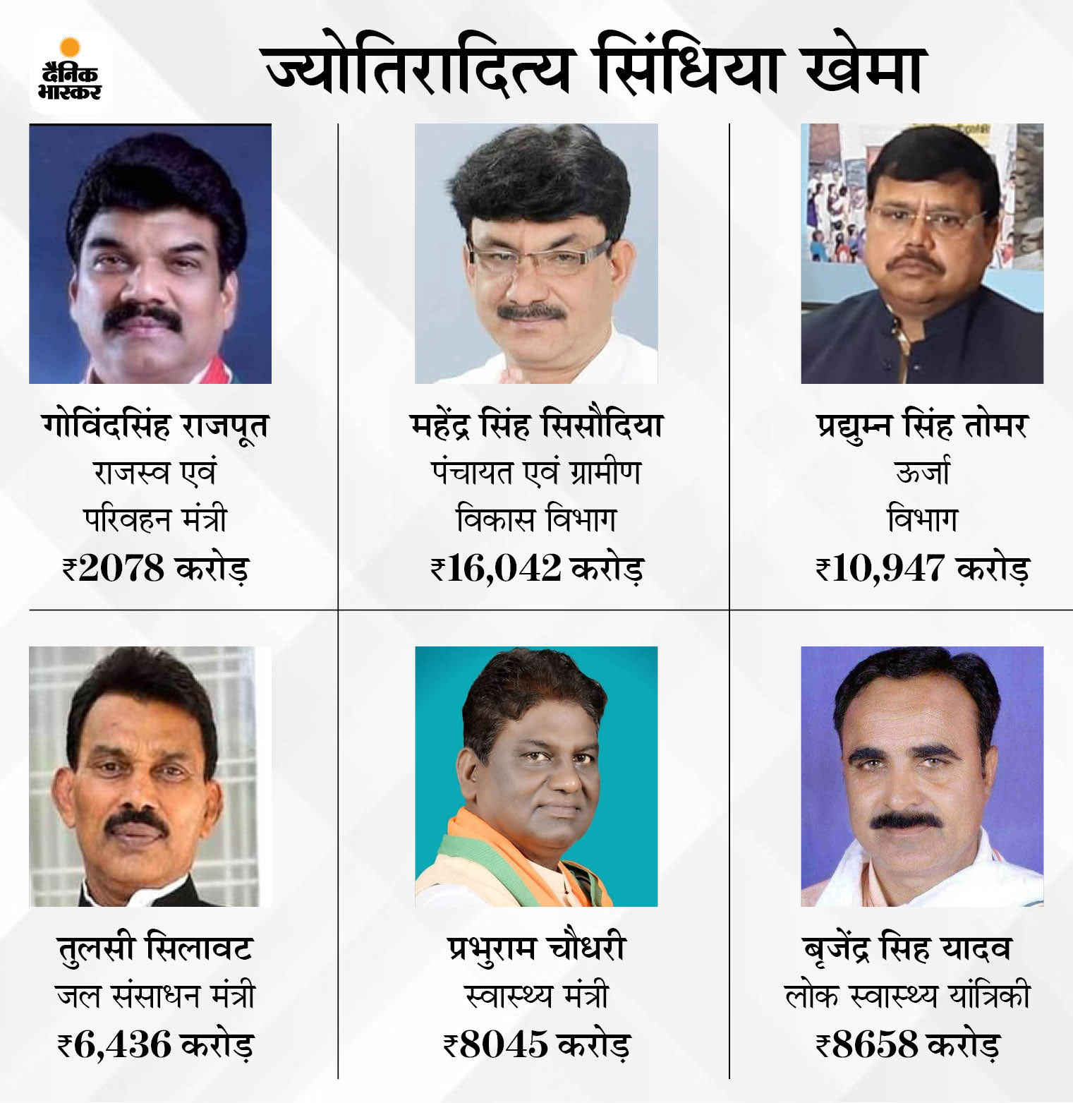 शिवराज सरकार में सिंधिया गुट के 8 मंत्री हैं। इनमें मुख्य रूप से गोविंद सिंह राजपूत, महेंद्र सिंह सिसौदिया, प्रदुम्मनसिंह तोमर, तुलसी सिलावट, प्रभुराम चौधरी और बृजेंद्रसिंह यादव हैं। इनमें सबसे ज्यादा बजट पंचायत एवं ग्रामीण विकास मंत्री महेंद्र सिंह सिसौदिया को 16,042 करोड़ रुपए आवंटित किए गए हैं। दूसरे नंबर पर ऊर्जा मंत्री प्रद्दुम्मन सिंह तोमर हैं, जिन्हें 10,947 करोड़ रुपए मिले हैं। सबसे कम 2,078 करोड़ रुपए का बजट राजस्व और परिवहन विभाग को दिए गए हैं, जो गोविंद सिंह राजपूत के पास है।