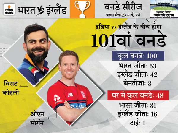 दोनों टीमें 4 साल बाद भारतीय जमीन पर आमने-सामने हैं। टीम इंडिया ने जनवरी 2017 में अपने घर में इंग्लैंड को वनडे सीरीज में 2-1 से हराया था।