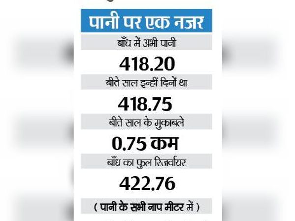 यह बीते साल के मुकाबले 0.75 मीटर कम है। पिछले साल इन्हीं दिनों बाँध का जल स्तर 418.20 मीटर था। यह कमी उतने मायने नहीं रखती है। बाँध का जल स्तर इस बार 20 जून यानी मानसून आने तक 412 मीटर तक बनाए रखने का लक्ष्य रखा गया है। यह बाँध का न्यूनतम स्तर नहीं, लेकिन सावधानी के लिए इतनी सीमा तक पानी बचाने का लक्ष्य रखा गया है। इसको लेकर सावधानी आगे बरती जाएगी कि इतना पानी बाँध में बचा रहे।