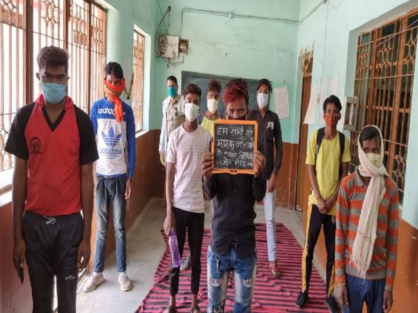 ओमती पुलिस ने मास्क न पहनने वालों का चालान कर बस से अस्थाई जेल भेजा।