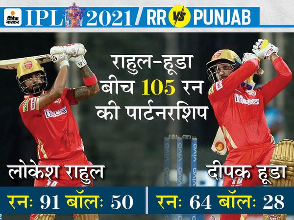 IPL 2021 का चौथा मैच काफी रोमांचक रहा। सोमवार रात हुए इस मैच में राजस्थान रॉयल्स को आखिरी बॉल पर 5 रन चाहिए थे। कप्तान संजू सैमसन ने छक्का लगाने की कोशिश की, लेकिन बाउंड्री पर कैच आउट हुए। पंजाब किंग्स ने यह मैच 4 रन से जीत लिया। मैच में दोनों टीम ने 3-3 कैच छोड़े। साथ ही मैच में कुल 24 छक्के भी लगे। पंजाब टीम के खिलाड़ियों ने 13 और राजस्थान टीम ने 11 छक्के जड़े। मैच का स्कोरकार्ड देखने के लिए यहां क्लिक करें…