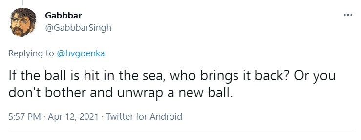 हर्ष गोयनका के आईपीएल खेलने के ट्वीट पर एक यूजर ने मजेगार कमेंट किया. (Gabbar twitter)