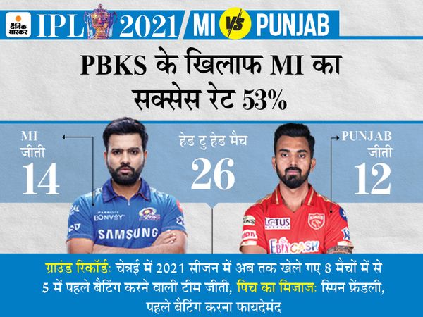 रोहित शर्मा की कप्तानी वाली मुंबई की टीम ने बल्लेबाजों के कमजोर प्रदर्शन के कारण दिल्ली कैपिटल्स के खिलाफ पिछला मैच गंवा दिया था। वहीं, पंजाब की टीम हार की हैट्रिक बना कर इस मैच में आ रही है।