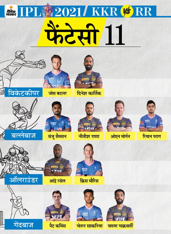 इंडियन प्रीमियर लीग (IPL-2021) में शनिवार को सातवें स्थान की टीम कोलकाता नाइट राइडर्स आठवें स्थान की टीम राजस्थान रॉयल्स से भिड़ेगी। टीमें भले ही फिसड्डी हों लेकिन वानखेड़े स्टेडियम की पिच पर होने वाले मैच में अगर आप संतुलित फैंटेसी टीम बना पाएं तो काफी पॉइंट जीत सकते हैं।