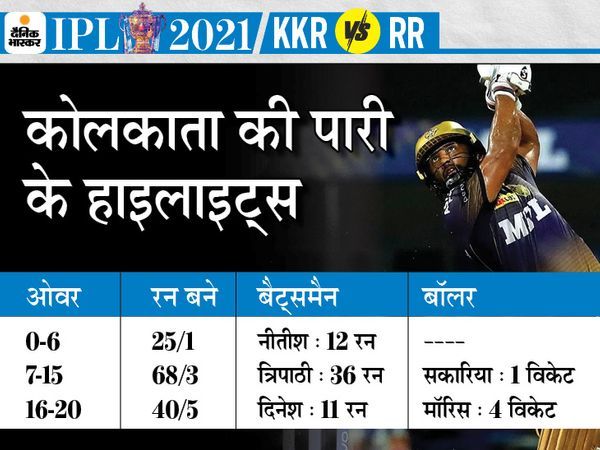 मॉरिस ने KKR की पारी के 18वें ओवर में दो झटके दिए। उन्होंने ओवर की चौथी बॉल पर आंद्रे रसेल को पवेलियन भेजा। इसके बाद आखिरी बॉल पर दिनेश कार्तिक को आउट किया। वहीं, 20वें ओवर में मॉरिस ने पैट कमिंसऔर शिवम मावी को आउट किया। इस तरह मॉरिस ने कोलकाता के बल्लबाजों को आखिरी ओवरों में भी रन नहीं बनाने दिए।