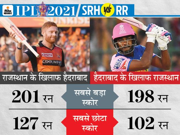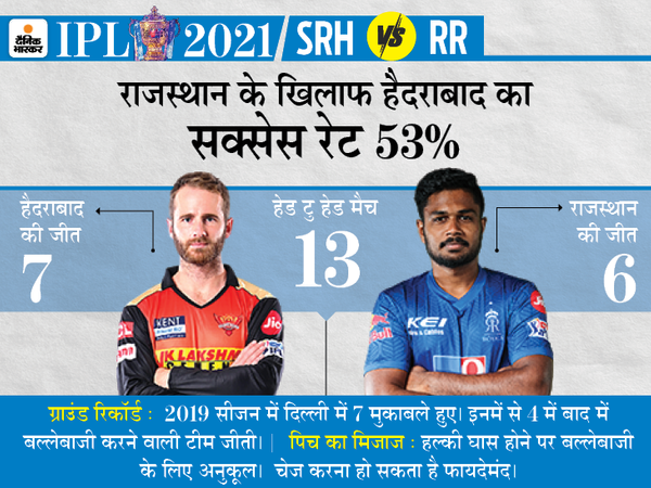 IPL 2021 सीजन का 5वां डबल हेडर मुकाबला रविवार को खेला जाएगा। पहले मैच में राजस्थान रॉयल्स (RR) और सनराइजर्स हैदराबाद (SRH) की टीम आमने-सामने होगी। वहीं, दूसरे मैच में पंजाब किंग्स (PBKS) और दिल्ली कैपिटल्स (DC) आपस में भिड़ेंगी। RR के खिलाफ SRH के नए कप्तान केन विलियम्सन और जॉनी बेयरस्टो अच्छी बैटिंग कर सकते हैं।
