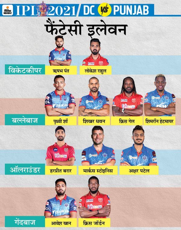 वहीं, DC vs PBKS मैच में शानदार फॉर्म में चल रहे पृथ्वी शॉ और लोकेश राहुल ज्यादा पॉइंट्स दिला सकते हैं। चलिए जानने की कोशिश करते हैं कि IPL के अल क्लासिको माने जाने वाले इस मैच में फैंटेसी-11 के लिए कौन-कौन से खिलाड़ी सही चयन साबित हो सकते हैं।