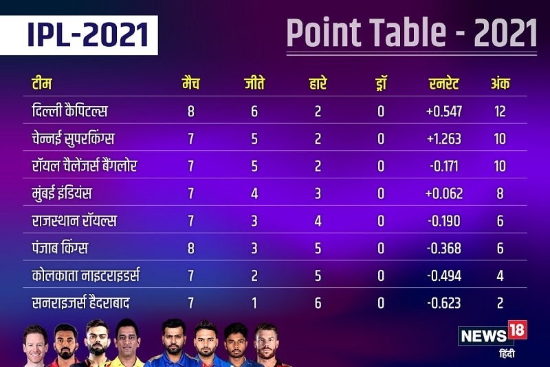 IPL 2021 Points Table: दिल्ली कैपिटल्स ने आईपीएल के 29वें मुकाबले में पंजाब किंग्स को 7 विकेट से मात दी और इस जीत के साथ ही वह पॉइंट टेबल में टॉप पर पहुंच गई है