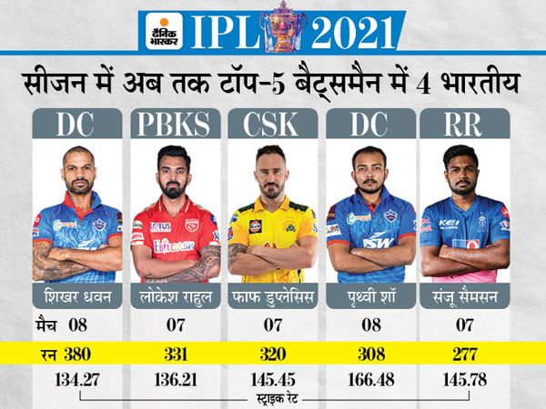 पंत के अभियान की शुरुआत गुरु धोनी की टीम CSK के खिलाफ हुई। इस मैच में दिल्ली के पास कगिसो रबाडा और नॉर्खिया जैसे गेंदबाज नहीं थे। वहीं, आवेश ने 4 ओवर में सिर्फ 23 रन दिए और 2 विकेट लेकर चेन्नई के बल्लेबाजों को खूब तंग किया। इसके बाद पृथ्वी और शिखर धवन ने 138 रन की पार्टनरशिप की और मैच जिता दिया। इन दोनों ने 8 में से 5 मैचों में 50+ रन की पार्टनरशिप की। इसमें 2 शतकीय साझेदारी भी शामिल है।