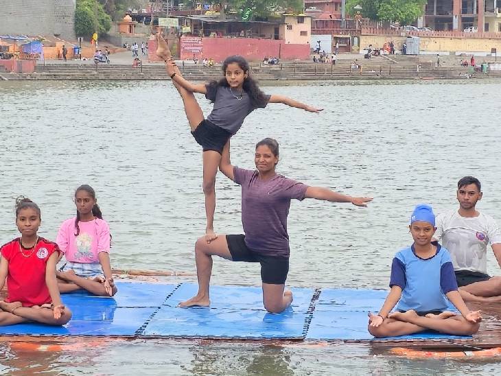 अंतरराष्ट्रीय योग दिवस के उपलक्ष्य में एक दिन पूर्व उज्जैन में जल योग के माध्यम से शरीर को स्वस्थ रखने की प्रेरणा बच्चो ने दी। शनिवार को उज्जैन में शिप्रा नदी के दत्त अखाड़ा घाट पर करीब 30 बच्चो ने शिप्रा नदी में जल योग किया। जिसमे उन्होंने पिरामिड स