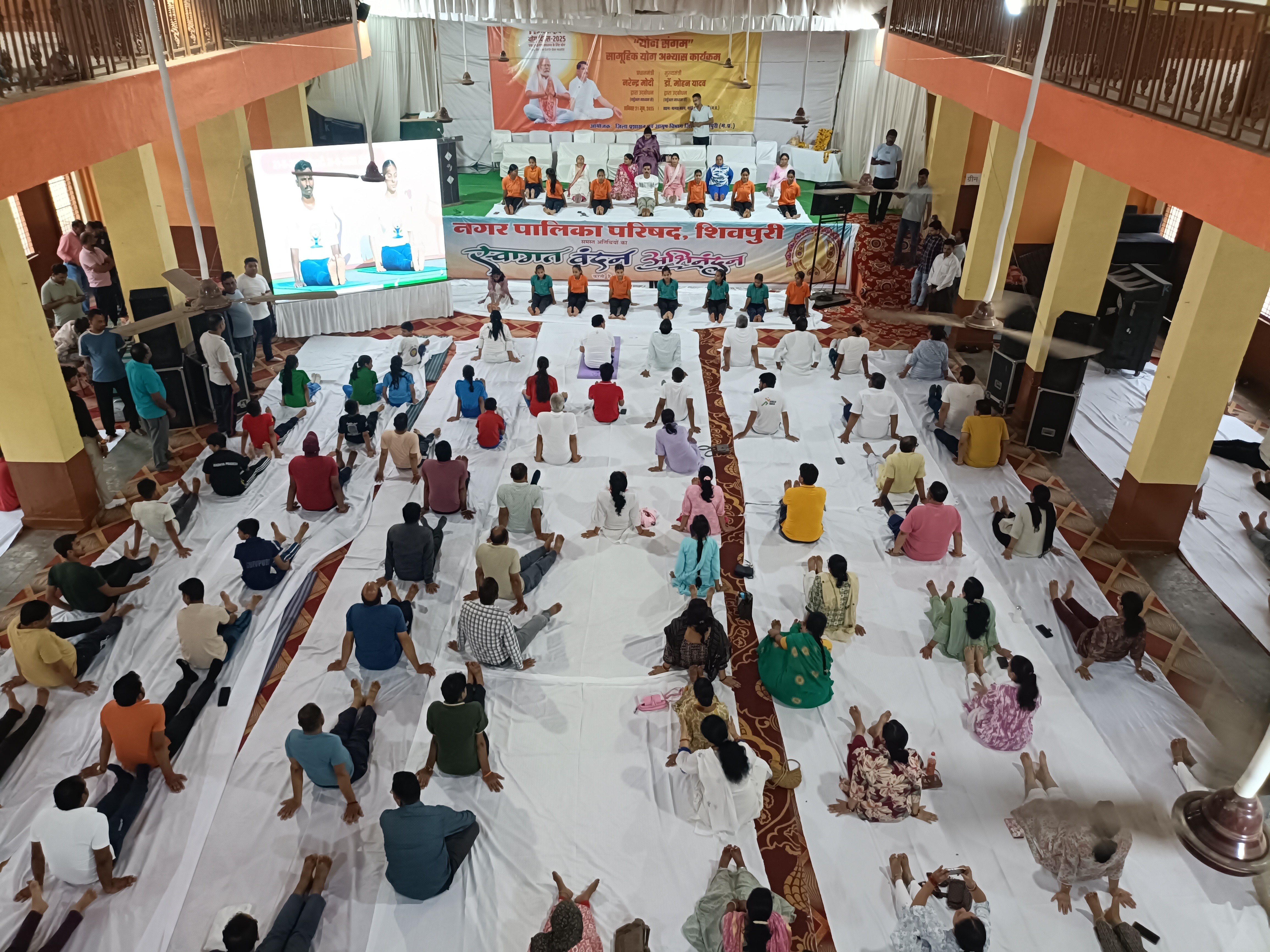 शिवपुरी में शनिवार को 11वां अंतरराष्ट्रीय योग दिवस उत्साहपूर्वक मनाया गया। जिला स्तरीय कार्यक्रम मानस भवन में हुआ। इसमें प्रदेश के ऊर्जा मंत्री और जिले के प्रभारी मंत्री प्रद्युम्न सिंह तोमर शामिल हुए। कार्यक्रम सुबह 6 बजे शुरू हुआ। मंच पर कलेक्टर रव