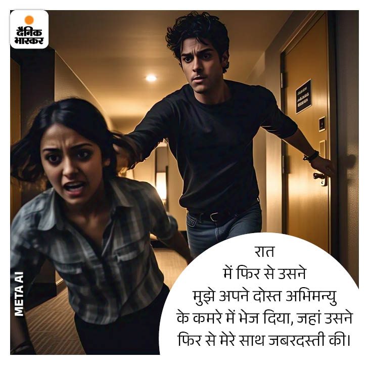 1 सितंबर 2023 को मेरे पति के दोस्त अभिमन्यु ने ही मेरी और मेरे पति की दिल्ली की फ्लाइट की टिकट कराई थी। दिल्ली में मेरा पति मुझे अभिमन्यु के घर लेकर गया और रात में जबरन उसके कमरे में मुझे भेज दिया।