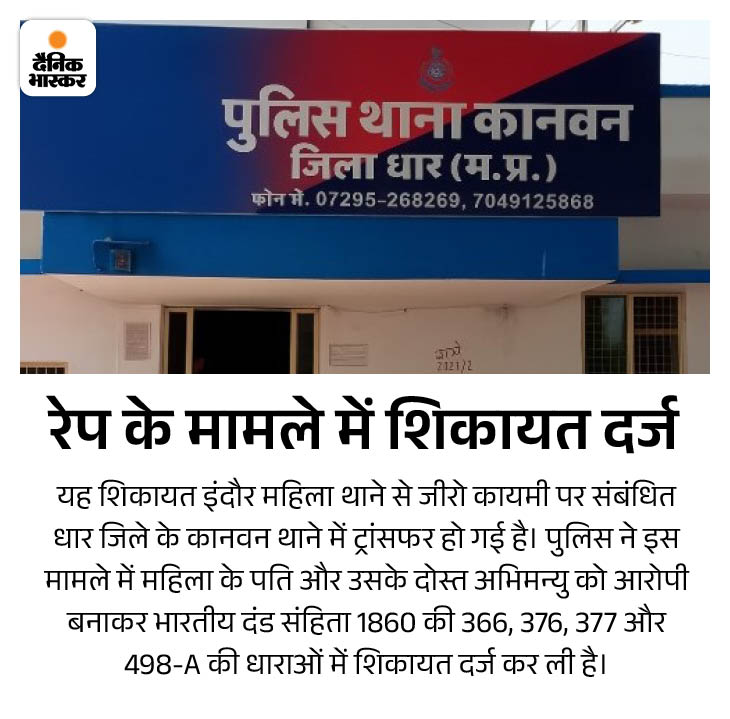कुछ समय तक सब कुछ ठीक चलता रहा, लेकिन 16 जून को फिर वह मुझे अभिमन्यु के पास जाने के लिए कहने लगा। मैंने उसका विरोध किया और एफआईआर दर्ज करने की बात कही तो डर के मारे भाग कर धार चला गया।
