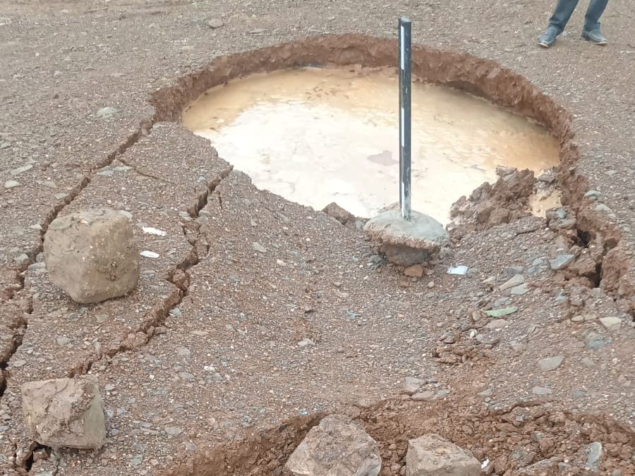 सड़क पर हुआ बड़ा गड्ढा।