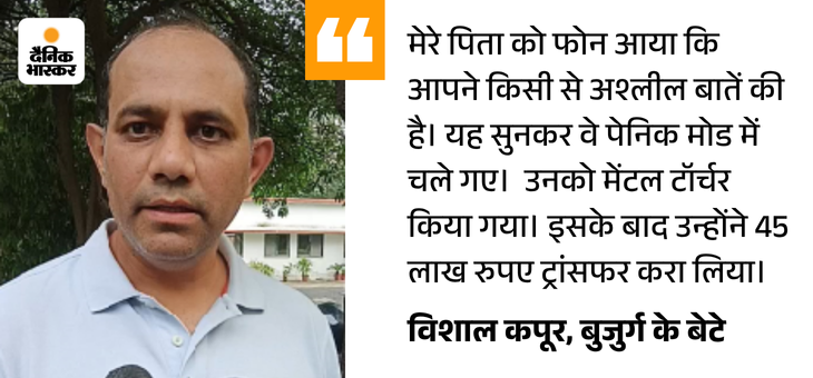 कमरे में जाओ, फोन का कैमरा बंद न हो डर की वजह से बुजुर्ग से जैसा-जैसा कहा गया, वे वैसा करते गए। बार-बार सामने वाला व्यक्ति एक ही बात दोहराता रहा, तुम्हारे बैंक खाता और मोबाइल का उपयोग मनी लॉन्ड्रिंग में किया जा रहा है।