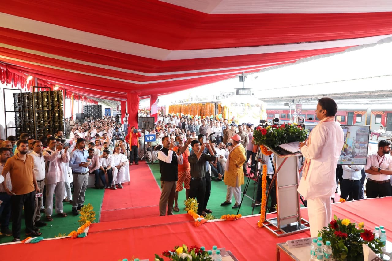 इस अवसर पर रेल मंत्री अश्विनी वैष्णव भावनगर (गुजरात) से जुड़े थे। उन्होंने एक साथ तीन ट्रेनों- भावनगर-अयोध्या, जबलपुर-रायपुर और रीवा-पुणे को रवाना किया। कार्यक्रम में मध्यप्रदेश के मुख्यमंत्री डॉ. मोहन यादव और छत्तीसगढ़ के मुख्यमंत्री विष्णुदेव साय भी वर्चुअल रूप से शामिल हुए।