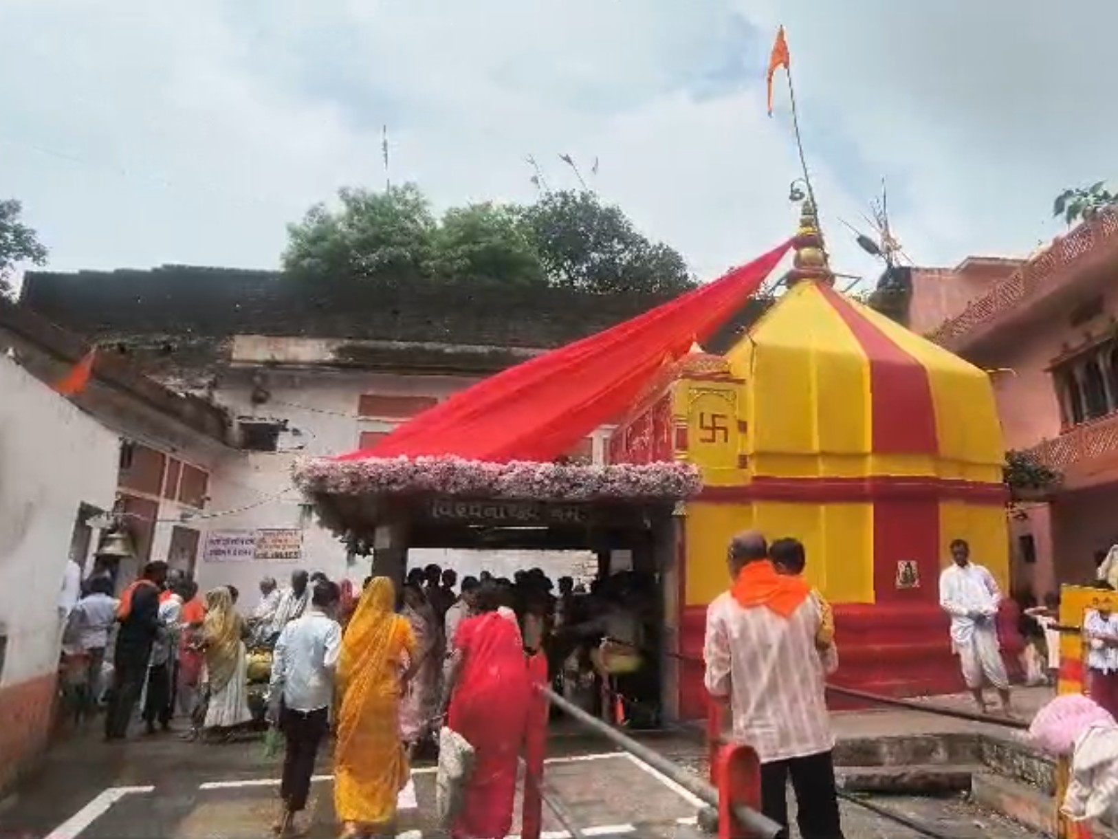 मंदिर में आराधना करने पहुंच रहे श्रद्धालु।