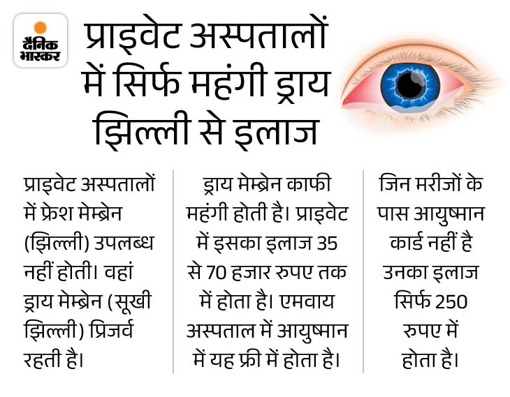 डिलीवरी के बाद यह वेस्ट होता है जो किसी काम का नहीं होता लेकिन इससे आंखों की चोटों का इलाज हो रहा है। हर माह 80 से ज्यादा मरीजों को इससे लाभ मिल रहा है। अहम पहलू यह कि प्राइवेट अस्पताल में यह इलाज 35 से 70 हजार रु. में होता है लेकिन एमवायएच में आयुष्मान में फ्री में हो रहा है।