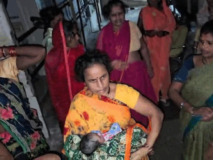लोग नवजात को कुछ देर के लिए हवा में बाहर लेकर भी पहुंचे।