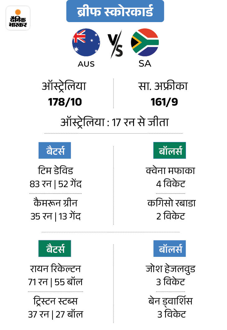 ऑस्ट्रेलिया ने लगातार नौवां टी-20 जीता, साउथ अफ्रीका को 17 रन से हराया