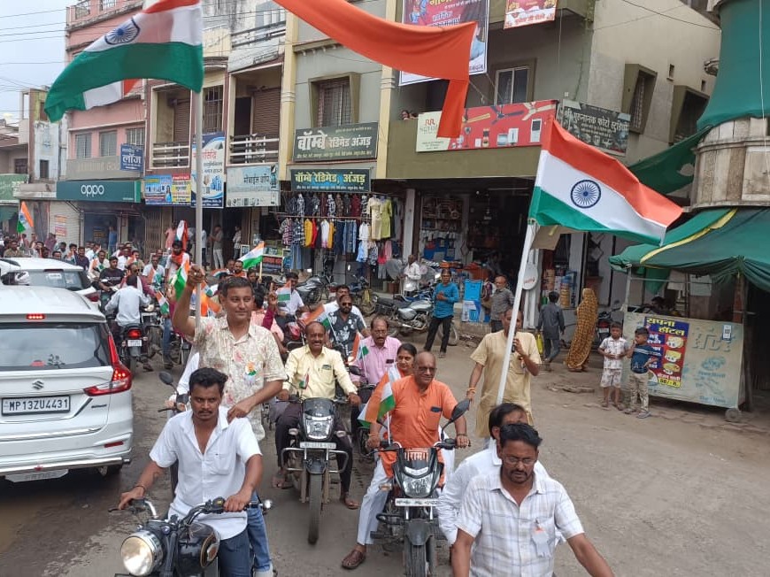 बड़वानी के अंजड़ नगर में भाजपा मंडल द्वारा बुधवार को तिरंगा यात्रा का आयोजन किया गया। यात्रा दोपहर में दशहरा मैदान से शुरू हुई। इसमें सैकड़ों भाजपा और युवा मोर्चा कार्यकर्ता बाइक पर तिरंगा लेकर शामिल हुए। बाइक रैली में एक भाजपा कार्यकर्ता ने हेलमेट न