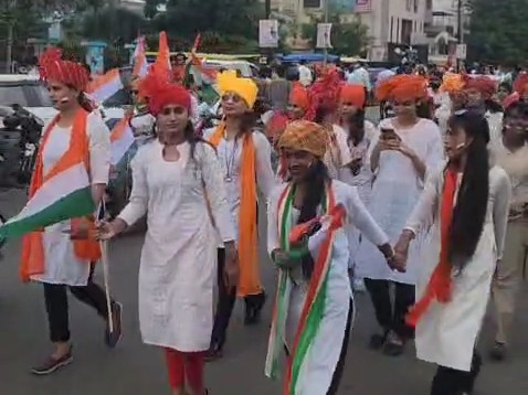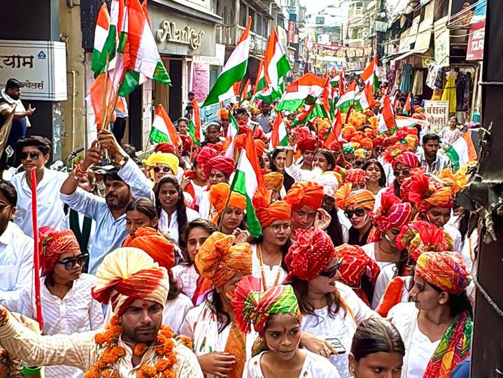 स्वतंत्रता दिवस पर विदिशा में भव्य तिरंगा यात्रा निकाली गई, जिसमें सैकड़ों महिलाएं शामिल हुईं। दुर्गा नगर चौराहे से यात्रा की शुरुआत हुई। महिलाओं ने हाथों में तिरंगा थामकर ‘भारत माता की जय’ और ‘वंदे मातरम’ के नारे लगाए। ढोल-नगाड़ों और देशभक्ति गीतों