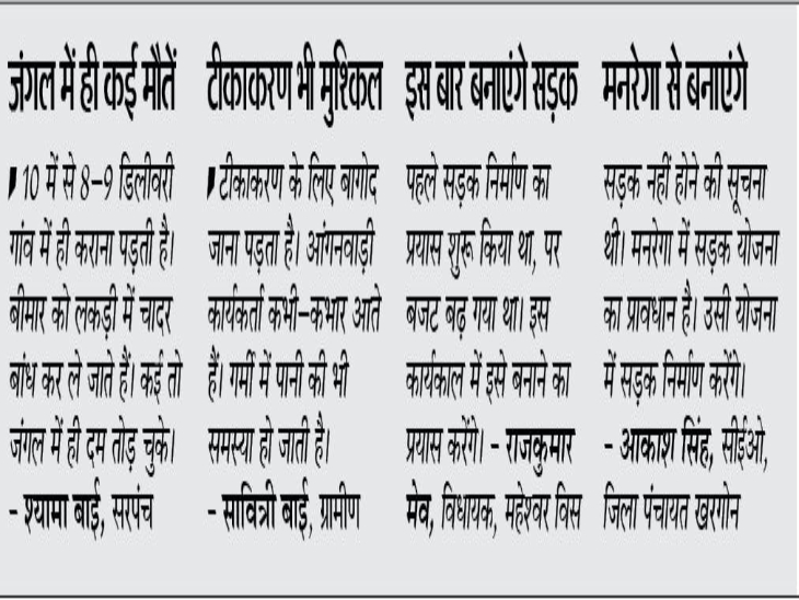 यही कारण है कि 2018 में ग्रामीणों ने विरोध करते हुए एक भी वोट नहीं डाला था। देवगढ़ महेश्वर विधानसभा में आता है, पर जनपद पंचायत बड़वाह है। यह गांव इंदौर संभागीय कार्यालय से 70 किमी दूर है और बड़की चौकी ग्राम पंचायत का हिस्सा है। सरपंच प्रतिनिधि छन्नूलाल खड़ा ने बताया कि सड़क को लेकर दो बार सर्वे हो चुका है लेकिन आज तक निर्माण नहीं हुआ।