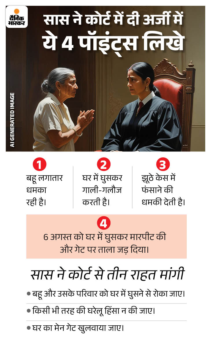 दरअसल, सास ने बहू के खिलाफ अदालत में याचिका दायर कर राहत की मांग की थी। ये मामला केवल घरेलू कलह का नहीं था, बल्कि दरवाजा तोड़ने, घर में घुसकर ताला लगाने और धमकियों तक जा पहुंचा था। सास ने याचिका में कहा था कि वह साल 2022 में ही बेटे-बहू को संपत्ति से बेदखल कर चुकी है, इसके बाद भी बहू आए दिन घर आकर उसे परेशान कर रही है।