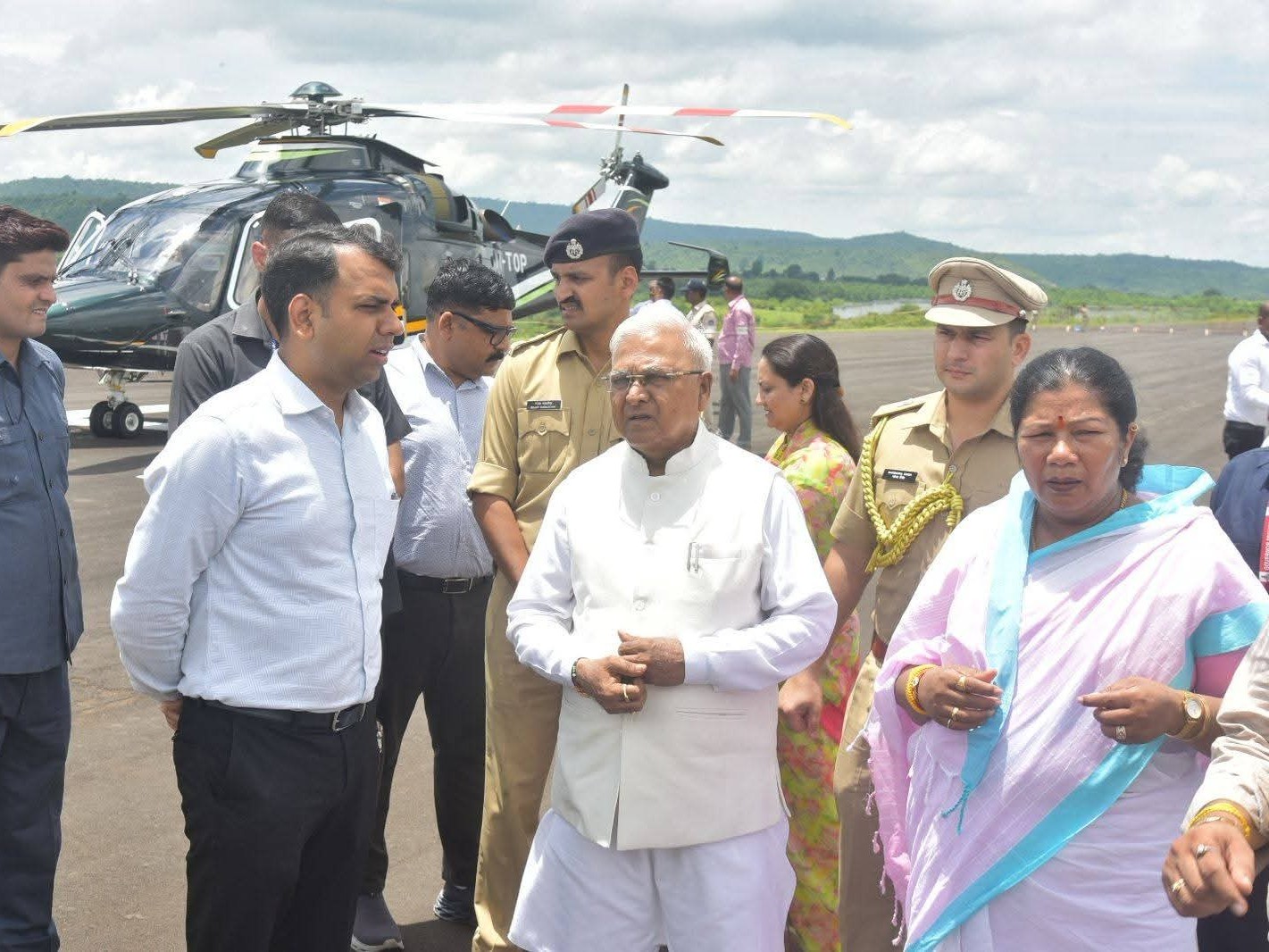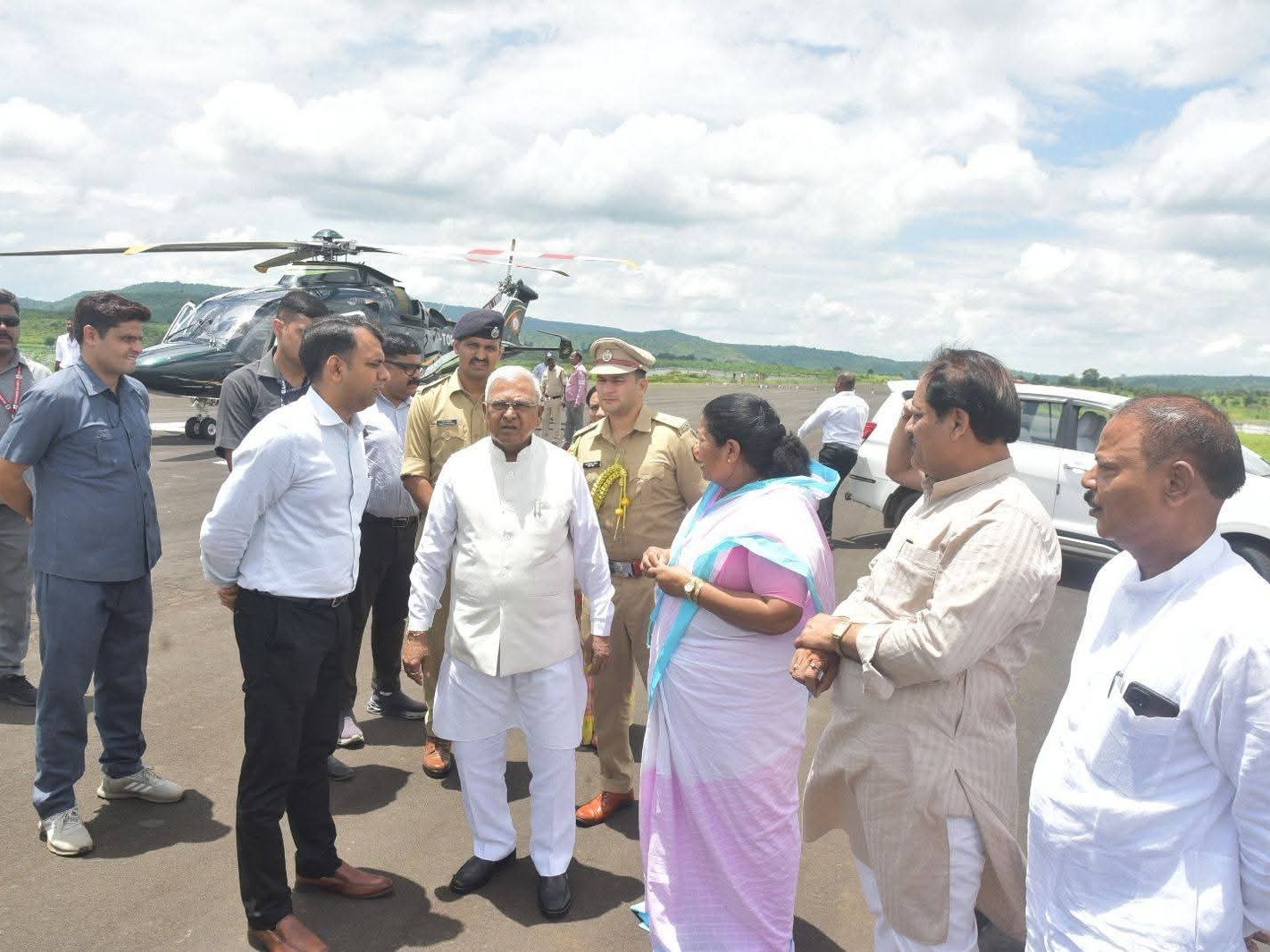 मध्यप्रदेश के राज्यपाल मंगूभाई पटेल दो दिवसीय प्रवास पर मंडला जिले पहुंचे। ग्वारा हवाई पट्टी पर पीएचई मंत्री संपतिया उइके ने उनका स्वागत किया। नगर पालिका अध्यक्ष विनोद कछवाहा, प्रफुल्ल मिश्रा, कलेक्टर सोमेश मिश्रा और पुलिस अधीक्षक रजत सकलेचा भी स्वाग