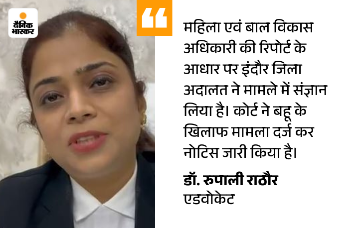 इंदौर जिला कोर्ट ने बहू के खिलाफ घरेलू हिंसा से महिलाओं का संरक्षण अधिनियम के तहत केस दर्ज किया है।