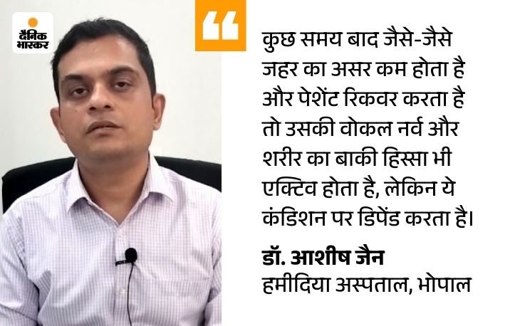 कंचन की आवाज क्या वापस लौटेगी? भास्कर ने ये सवाल भोपाल के हमीदिया अस्पताल के टॉक्सिकोलॉजी विभाग के डॉ. आशीष जैन से पूछा तो उन्होंने कहा कि करैत का न्यूरो टॉक्सिन जहर सीधे नर्वस सिस्टम पर असर करता है। इसका जहर कोबरा से भी खतरनाक होता है। कॉमन करैत भारत के सबसे जहरीले सांपों में से एक है।