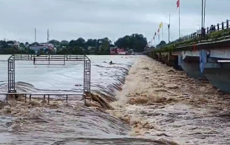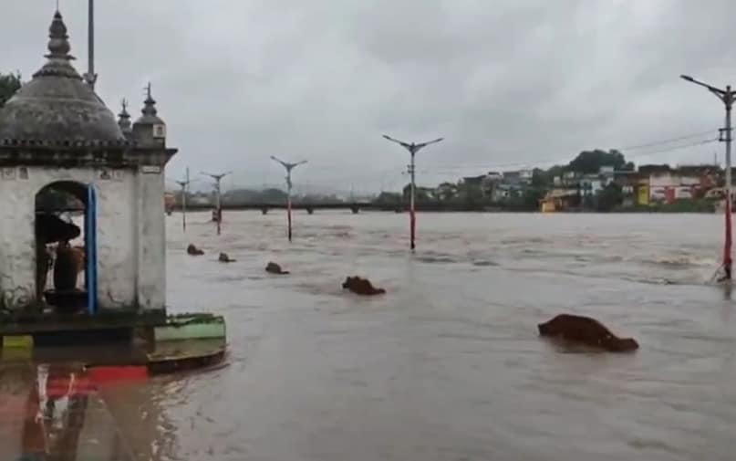 मंडला जिले सहित आसपास के डिंडोरी, अनूपपुर और छत्तीसगढ़ में लगातार बारिश से मां नर्मदा में अचानक उफान आ गया है. छोटा रपटा पुल डूब गया है और नदी पुल से दो फीट ऊपर बह रही है. खतरे के निशान से ऊपर पहुंचने से महिष्मति घाट के पास बने छोटे मंदिर डूब गए हैं. यातायात प्रभावित होने से लोग घरों में कैद हैं. एसडीआरएफ टीमों को अलर्ट पर रखा गया है और बाढ़ प्रभावितों को सहायता पहुंचाई जा रही है.